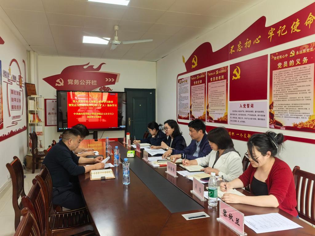4月28日,澳门·永利集团3044召开深入贯彻中央八项规定精神学习教育暨党总支理论学习中心组(扩大)集体学习会,澳门·永利集团3044党总支副书记罗志红主持会议并讲话,学院党总支委员出席会议并交流发言,宣传部部长程赛杰、临床医学院党委副书记孙志强到会指导。