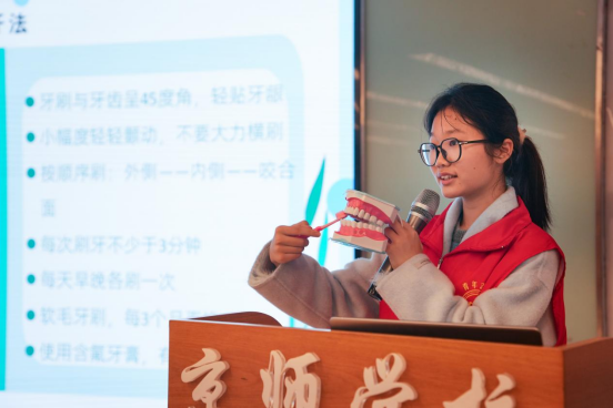 随后,澳门·永利集团3044的师生结合青少年口腔健康特点,通过趣味PPT、牙齿模型演示和互动问答等形式,深入浅出地讲解了龋齿预防、正确刷牙方法、饮食健康等口腔防护知识。现场还开展了“刷牙小能手”实操比赛,学生们踊跃参与,在轻松愉快的氛围中掌握了科学护齿技能。