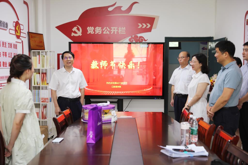 秋风送爽、丹桂飘香。在第40个教师节来临之际,澳门·永利集团3044校党委副书记、校长李秋根一行莅临澳门·永利集团3044,对辛勤工作在教学一线的教师们进行了亲切的慰问。