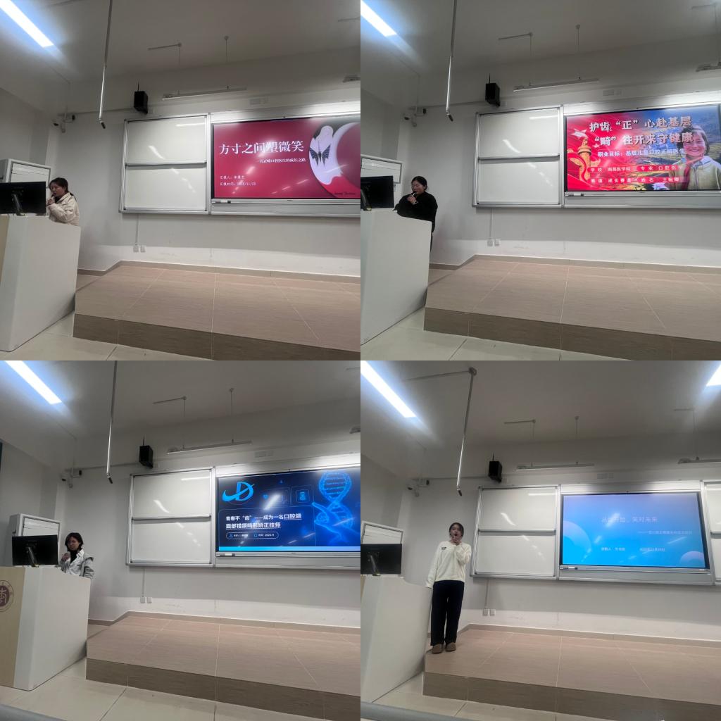 本次比赛自11月启动以来,得到全院学生的积极响应,经过班级初选、专业复选两轮激烈角逐,8名选手凭借清晰的规划思路、扎实的自我认知和贴合专业的职业目标,成功晋级决赛。比赛现场,选手们展现出极强的逻辑思维与表达能力,规划方案兼具专业性与创新性。他们结合 PPT,从自我认知、口腔行业环境分析、职业目标确立、分阶段成长路径设计、专业学习与实践行动计划及动态评估调整方案等方面,全面阐述个人职业规划方案。